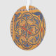 Abstract geometric design featuring detail from mediaeval Armenian illuminated manuscript in gold, red and blue