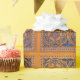 Abstract geometric design featuring detail from mediaeval Armenian illuminated manuscript in gold, red and blue