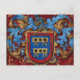 A beautiful mediaeval coat of arms, designed in deep shades of red and blue.