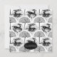 A mediaeval style repeating pattern in black featuring some deer, stag and trees in scallop shaped motifs
