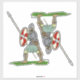 Clad in byrnie (short mail shirt) and spangenhelm (helmet made up of plates riveted to a framework of strips), an early mediaeval English/Saxon warrior carries a round shield and wields a winged spear in this original illustration by Richard H. Fay.