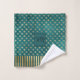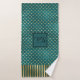 Beautiful faux gold glitter Mediaeval-style patterned Bath Towel Set on deep teal background with decorative font typography monogram. You can easily customise the initials. Co-ordinating striped trim adds elegance & class to adorn your own bathroom decor or delight someone special as a personalised gift.