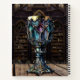 Mediaeval purple and aqua blue jewel toned goblet with gold rim in mediaeval gothic castle library.