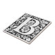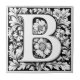 A black and white vector illustration of the letter in an elaborate mediaeval style, created in the style of Albrecht Dürer. The design is a square with a large central floral motif surrounded by symmetrical geometric patterns and swirls.