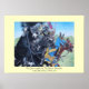 mediaeval knights jousting on horses historic art poster