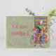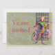 Invites featuring a vintage illustration of a mediaeval minstrel holding a lute and wearing a colourful outfit.