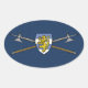Late mediaeval poleaxes are crossed behind a heater-shaped shield bearing a heraldic lion in this original design by Richard H. Fay.
