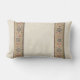 The design has the look of ribbons on each end with a pattern reminiscent of a mediaeval manuscript. Soft cream with a very subtle texture in the background. This pillow will compliment any decor.