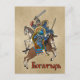 A depiction of a battle between a Russian bogatyr and an Asiatic warrior, both on horseback. Cyrillic (Russian) text reading "Богатырь"(Bogatyr) also appears. Bogatyri are heroic characters found in mediaeval Slavic epics. They are akin to the knights-errant of Western literature. Most of the stories about bogatyri revolve around the court of Vladimir I of Kiev (958–1015). Some bogatyri are presumed to be historical figures. Bogatyri protected Russian land and people against invaders, especially Tatars. Some were attributed powers and strength which were almost divine. This image is adapted from a black and white line drawing illustration in "Повесть о славных богатырях, златом граде Киеве и великой напасти на землю Русскую" (A Tale of Glorious Heroes From the Golden City Kiev and the Great Scourging of the Russian Land) by Tamara Likhiotal; published in the USSR in 1974.
