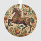 This product features a highly stylised, ornate depiction of a horse in a decorative, floral pattern. The horse is adorned with intricate, richly coloured designs in red, green, gold, and other hues, giving it a regal and festive appearance. Surrounding the horse are vivid, blooming flowers and swirling vines, all illustrated in a similar ornamental style, creating a harmonious and elegant composition. The background has a warm, vintage parchment-like texture, adding to the overall aesthetic appeal of the artwork.