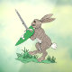 A shield-bearing sword-wielding rabbit based on various fighting or otherwise murderous rabbits found in mediaeval marginalia.