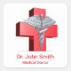 Medical 3D Caduceus Silver Cross Red Square Sticker