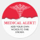 Custom text medical alert sticker featuring a white caduceus over the colour red and a torn out white edge for your text.