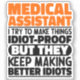 Funny Medical Assistant Sayings "Medical Assistant I Try To Make Things Idiot Proof But They Keep Making Better Idiots". Grab this Funny Medical Assistant design as a funny gifts for an awesome mum, dad or friend.
