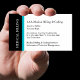 Modern medical billing and coding business cards in a minimal design that includes a black, white, and blue background, simple organised text layout you can personalise, and designed for a business that helps doctor offices and hospitals manage their receivables and billing.