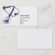 A stethoscope as a medical theme for a business card. You can enter text in the existing fields, but they can be modified (edited, added or deleted) using the Customise option. Choices of card size and paper type.