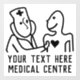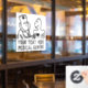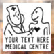 Medical clinic or hospital window cling graphic with black and white line illustration showing nursing care, with emphasis on heart health. Medical staff member with stethoscope giving a check-up to a patient.
