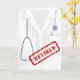A graphic medical coat design on a custom greeting card. The card has text templates for you personalisation. ©2013charmainepaulson