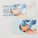 CPR training and first aid classes business cards in a two side template with CPR mannequin in the background being used for instruction and demonstration lightly printed on the front as a backdrop behind your editable text.