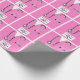 Creative medical-themed gift wrap featuring doctor's pink hospital scrubs and congrats for medical school grad. Edit text to add doctor, nurse or physician assistant's name.