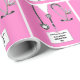 Creative medical-themed gift wrap featuring pink hospital scrubs, stethoscope and Swiss Army knife for doctor, nurse or physician assistant. Edit text to add his or her name.