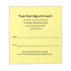 The notes say "Your Next Appointment" at the top. Lines of black display text are available for the name of the medical practice, street address, phone number, and website. There are also lines for the date and time of the appointment. The bottom has display text you can edit to show a custom message. All text can be edited or deleted. The sheets are light yellow.