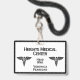 Lanyard, retractable or clip on styles with medical insignia and three text areas. Business Name - employee position and name