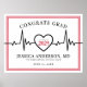 This heartbeat-themed graduation party sign features a bold mix of black and red, with a striking red double-line frame and a red background, adding a modern yet timeless touch. The classic serif fonts and clean, modern typography perfectly complement the EKG heart line, making it an ideal way to celebrate a medical or nursing school graduate. While the current design features black and red, all colours—including the heartbeat line and background—can be customised to match school colours or the graduate’s favourite shades.