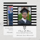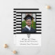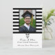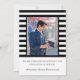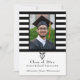 A modern nautical Black and White stripes graduation Announcement featuring a frame over your choice of photo. The backside features another photo and more details about your graduate.