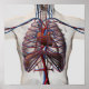 Medical illustration of male chest with arteries, veins, heart and rib cage.