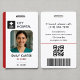 A bold emergency staff ID badge template featuring space for your photo, name, job title, ID number, and custom logo. Designed with a clean, modern red colorway for instant visibility, this badge is ideal for emergency room nurses, EMTs, paramedics, and hospital staff working in urgent care or trauma units. The back includes placeholders for a barcode, QR code, and lost and found contact details, making it both secure and professional. Perfect for hospitals, clinics, and healthcare organisations needing customisable staff identification.