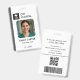 A modern medical ID badge template with a clean grey colorway, featuring space for your photo, name, job title, ID number, and custom logo. Designed to be versatile for medical technicians, lab staff, radiology teams, nurses, and hospital support employees. The back includes placeholders for a barcode, QR code, and lost and found contact information for added functionality and security. Perfect for hospitals, clinics, labs, and healthcare organisations that need customisable, professional staff identification.