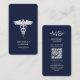 Medical Nurse Caduceus Dark Navy Blue Modern Monogram Business Card with QR Code. Please DM if you need help to modify before you make a purchase. Thank you for your support!