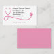 Medical Oncologist theme business cards designed with a pink stethoscope graphic representing the fight for Cancer in a simple editable template for an office of Oncology.
