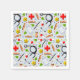 Creative medical-themed napkins featuring healthcare supplies and flowers for doctor or physician assistant's graduation party or birthday celebration.