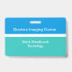 Medical employee name ID badges in a simple colourful double side design with clips in a design you can customise online in a budget friendly way. Designed for a Radiologist in a Radiology Lab, Hospital, Doctor office, or medical imaging centre.