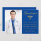 Medical Royal Blue Gold Caduceus Photo Graduation Announcement