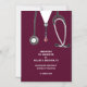 Creative doctor graduation announcement for medical school graduate featuring maroon scrubs and stethoscope art.