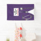 Creative medical school graduation party banner for doctor grad featuring purple scrubs, stethoscope and funny Swiss army knife. Edit text to add name and medical credentials.