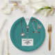 Unique medical-themed design featuring hospital scrubs, stethoscope, and Swiss Army knife. Edit text to add doctor's name.