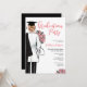 Medical School Graduation Party Invitation. The perfect doctor or nurse grad party Invitation for your daughter, niece, mother, aunt, cousin, or friend. Female Med School Graduation Invitation for grad parties celebrating women who just graduated from school of medicine, school of nursing or other medical profession certification. Featuring a portrait of woman with ight hair in a low bun, wearing lab coat with black graduation robe draped over one shoulder, and a bouquet of pretty pink flowers in her other hand, with a doctor's stethoscope slung around her arm. Pink script typography accents.