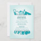 A unique graduation invitation design, in shades of teal, featuring medical supplies with a wide centre panel for your personalisation. (FP)