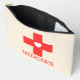 The accessory pouch has a strong decorative zipper and the printing is great!