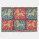 MEDIEVAL BESTIARY Lion Like Beast in Red Blue Throw Blanket