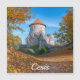 Autumn landscape of fortress with stone towers surrounded by yellow and orange trees. Cesis castle in Latvia