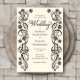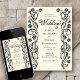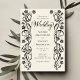 The coordinating pieces of this wedding invitation suite feature elegant art nouveau rose vines and ornate script.
