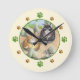 Cats Bud & Tony meditating in a Japanese Zen sand garden with a mouse raking the sand in the foreground. This whimsical illustration is bordered with a light beige border for a more serene, earthy feel. North/South and East/West time indicators have green trademark 'paw prints' while the rest of the numerical indicators have smaller brown 'paw prints'. A purrfectly fun wall time piece for a family room, meditation room or any place where a sense of peace and calm and is desired. Designed to appeal to all cat lovers or for those seeking inner peace. All Bud & Tony Illustrations have a subtle paw print painted in the design, see if you can find it.
