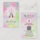* Yoga Zen Meditation Mindfulness Magical Abstract Rainbow Pastel Watercolor Black Line Drawing GODDESS / Woman BUSINESS CARDS design including Social Media area and room for a short tag line or description of services