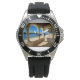 Has heft and feel of expensive stainless steel quartz wrist watches. Solid construction and good looks. Although it had a really top quality rubber strap, I substituted a stainless steel "Shark" style mesh strap, which I think is the most comfortable strap available. Perfect. True colors of original image. Clear, crisp image precisely aligned and spaced.