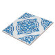A mediterranean blue and white damask patterned ceramic tile. Great for home remodel projects, kitchen backsplash, backyard wall art, and more.
